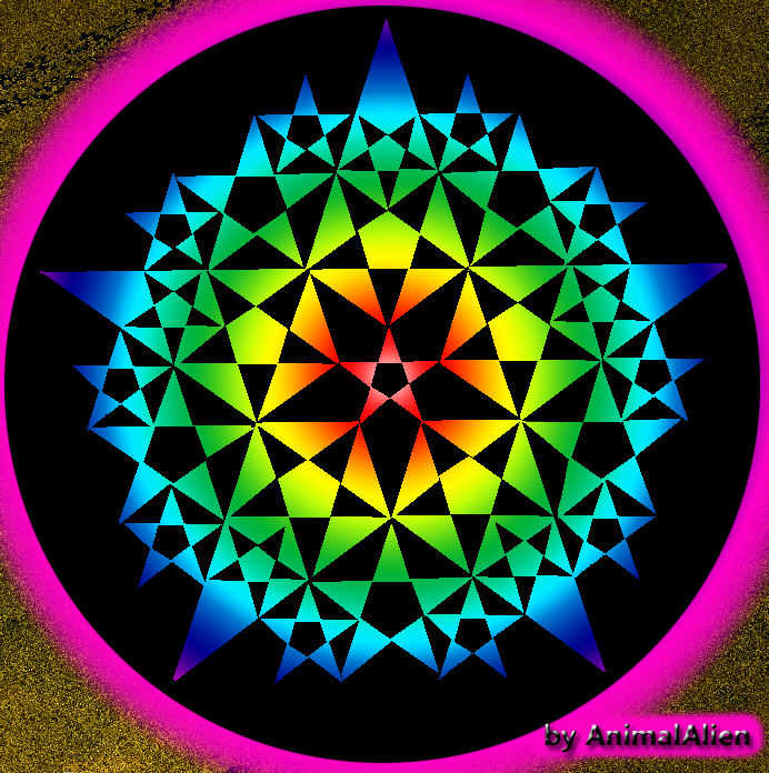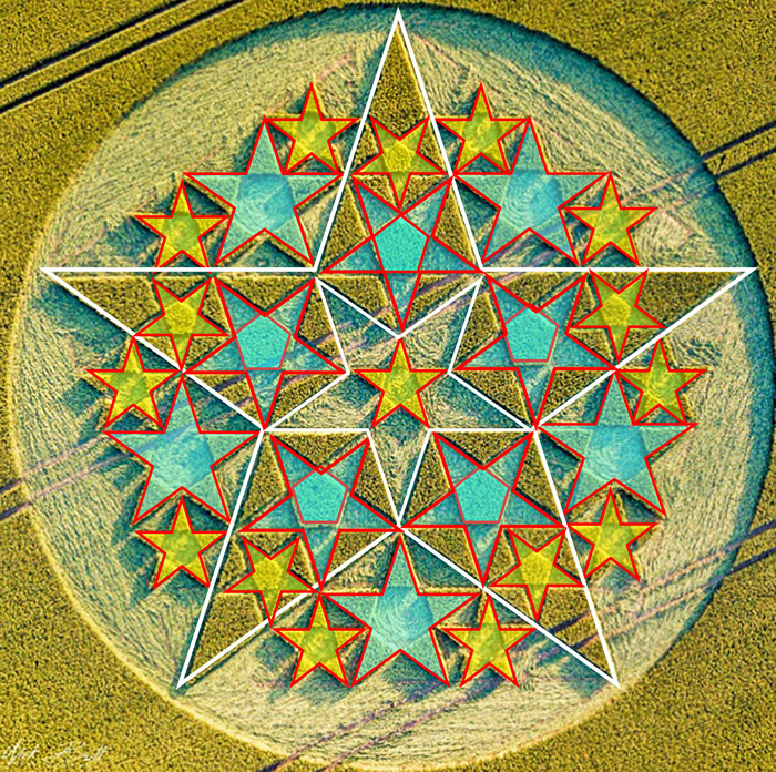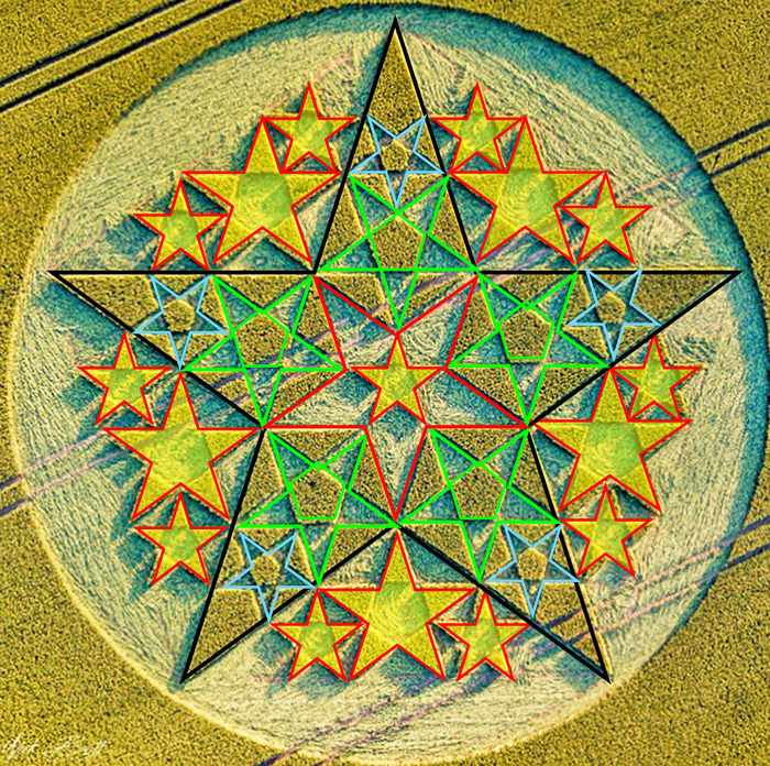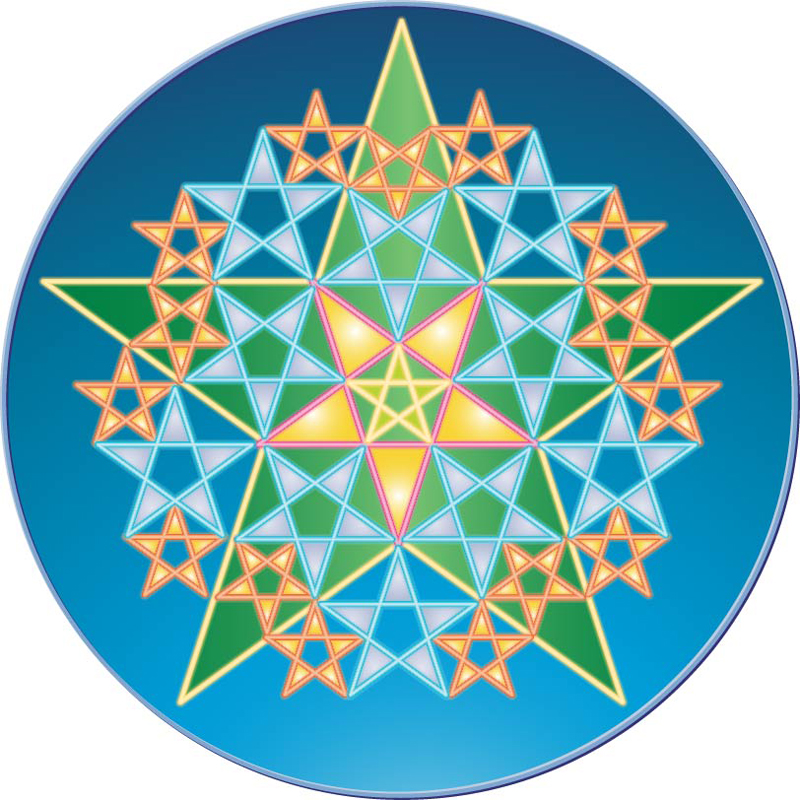 The recursive fractal pentagram, accompanied by an “infinite field of stars”