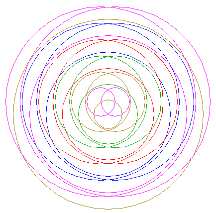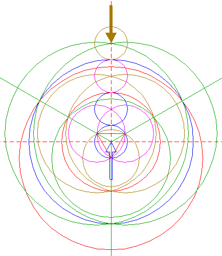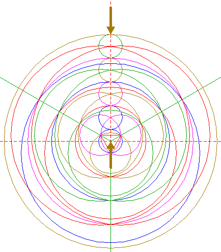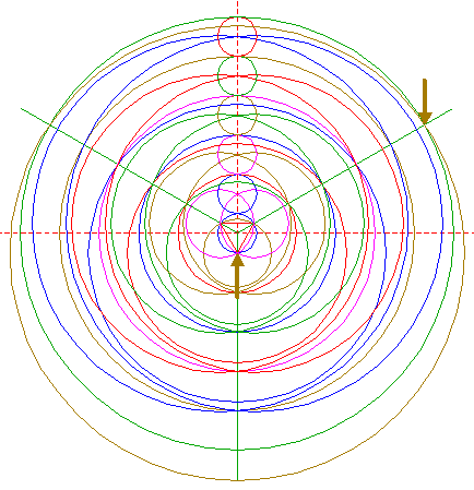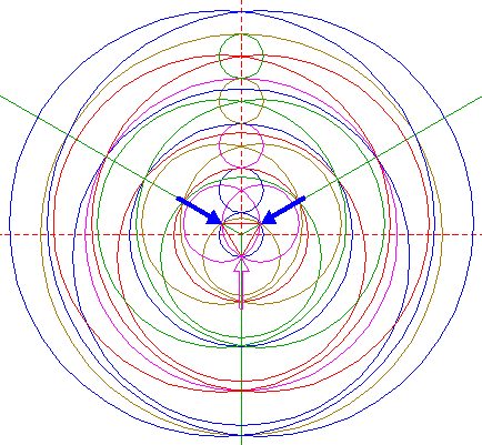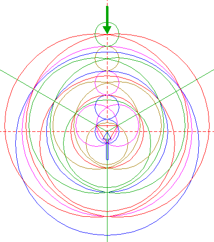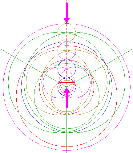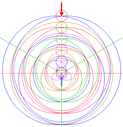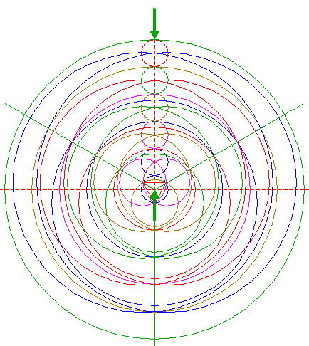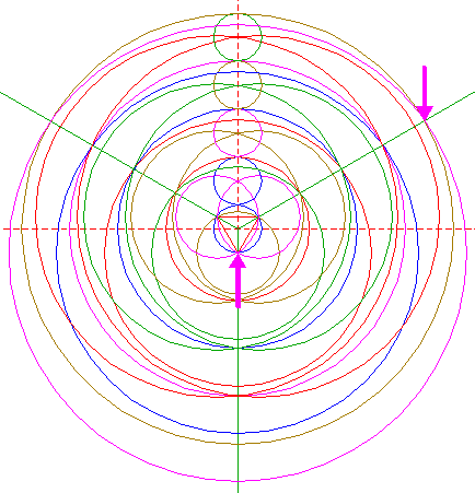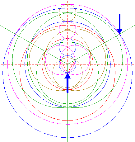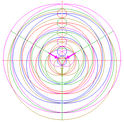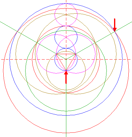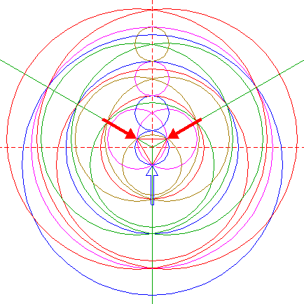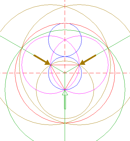 | Copy circle 1 to the upper intersection of circles 5. |
