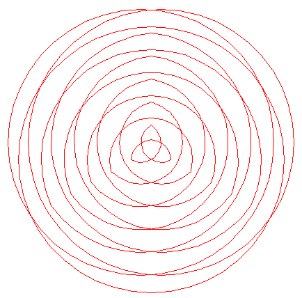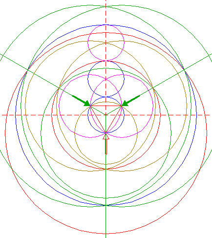 | Copy circle 8 two times, to the other angular points of triangle 2. In the next sixteen steps, steps 6, 7, 8, and 9, are repeated - mutatis mutandis - four times. |