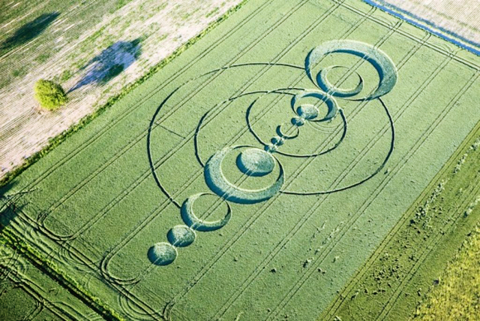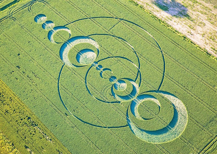 his wheat field had been cropped, a set of giant geometric patterns. At