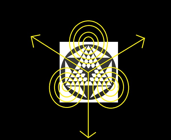 The big outer circle represents the Earth and symbolizes the energy