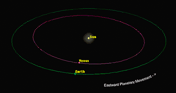 Venus moves around our Sun, relative to Earth. Over any period of eight
