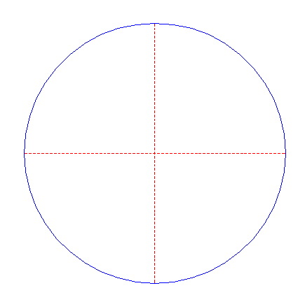 | Draw a circle. Draw the horizontal and vertical centerlines.