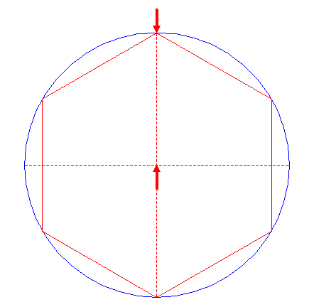 | Construct the inscribed hexagon of circle 12, pointing up.