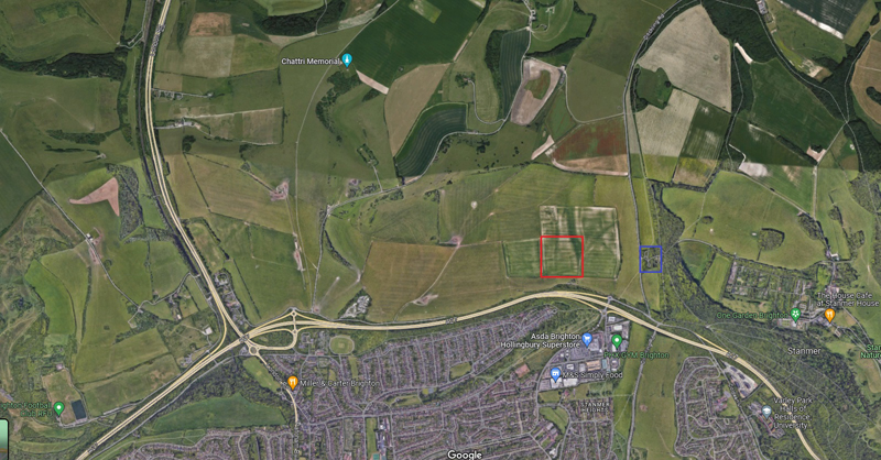 of Tegdown Hill, north of the A27 and Patcham, East Sussex. The field is