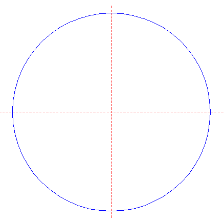 | Draw a circle. Draw and extend the horizontal and vertical centerlines.