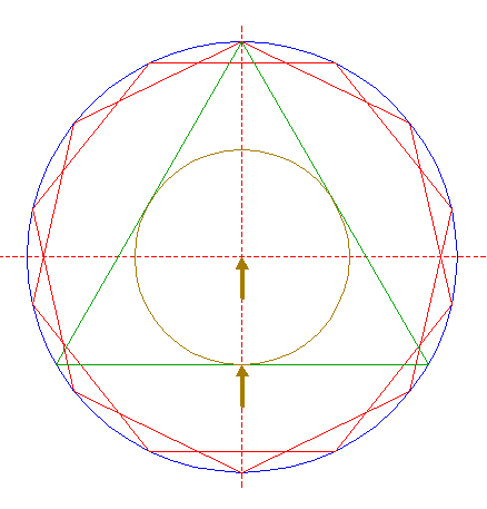 | Construct the inscribed equilateral triangle of circle 12, pointing up.
