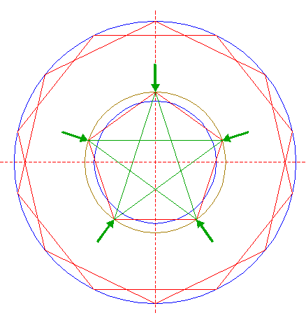 | Construct the inscribed pentagon (regular 5-sided polygon) of circle 4, pointing up.