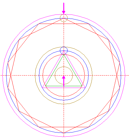 | Copy circle 11 to the upper intersection of circle 1 and the vertical centerline.