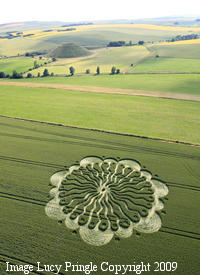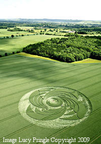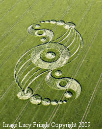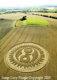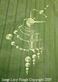 Being away and having an opportunity to reflect is useful as one is not caught up in the heat of it all. I see something unravelling, falling apart, something that is well overdue. It is common knowledge within the CC community that which is brought unto the CCs is amplified, made more and this now actually seems to be happening in Wiltshire. There have been no credible or significant CCs up there to date and the one they did get their hands on has now been trashed by persons unknown. A long time trader and mis-informer has now been made to look a complete fool and put into a position whereby he is operating out of a metal cargo container in the grounds of a well-known pub in The Vale which …wait for it…has a black shop window mannequin standing on the roof! This I find quite disturbing actually despite sounding amusing. This setup hardly resonates well with the spirit of the CCs as it feels and looks very ‘dark’. A scheme to peddle so called ‘crop circle permits’ just refuses to work for a second year after being advised from the beginning the formulation was quite unworkable. This scheme was media hyped and not surprisingly backed by all the long-time people with vested interests who are now I imagine, or should be, becoming somewhat disillusioned by this folly. So, Wiltshire wise, the house of cards really does seem to be a ’falling down. Most of the front line characters involved except WCCSG, I have to say seem to be more interested in themselves and money than the evolution, beauty and message of the CCs. None of them can see the sense of CGI, or have conveyed this to me and have never shown an interest, yet it is the scheme that is working well. I find this very interesting. Dorset on the other hand is all positivity and light…all good energies. It’s almost as if the Circlemakers have had enough of all this ‘people nonsense’ and are choosing to place their work where people are more receptive and untainted by bad energies. Like darkness and light, love and hate the light and love, in the long run as we all know, will prevail. Perhaps this shift is the real meaning of 2012, a renaissance towards more purity, a rebirth. The best laid schemes o’mice and men often go awry! … Robbie Burns.. Paul Jacobs (CGI) |