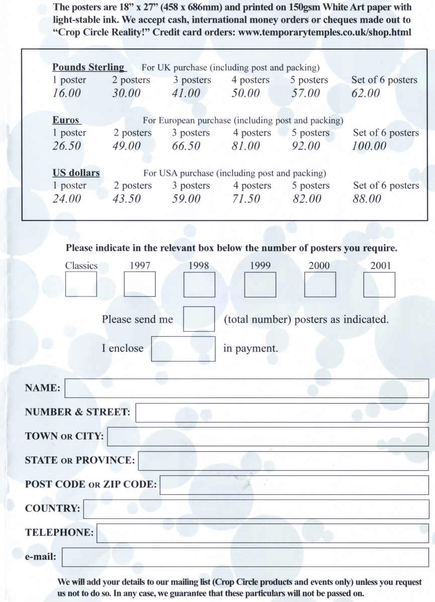 I am doing a Christmas special price for my wonderful 2014 Crop Circle calendar of £9.99 plus postage .. This offer applies to any order made online only. Payment may be made by cheque, postal order or by using the paypal