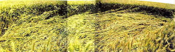 Along both perimeters, the stalks were laid from left to right, both in the 'belly' and along the straight edge of the 'D'. Both flows met and piled up in the corner in upper right of photo, very similarly to the way they did in the (UK) FreeAccess (Wheelchair) Formations of 1993. The wheat in the middle was laid from that right-hand corner toward the left (in fact, the middle sections had been laid first).