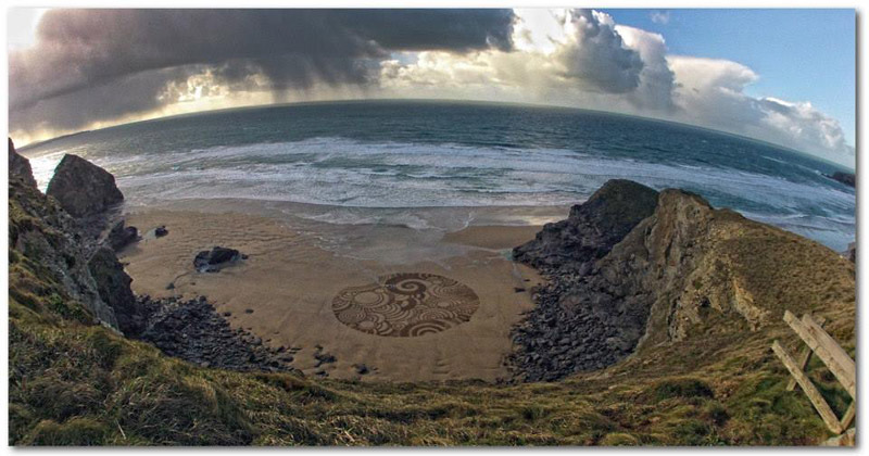 A dramatic photo of the latest and magical piece of sand art by Tony