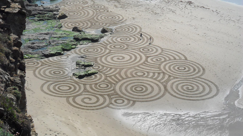 'Circles in the Sand' A recent piece of sand art by Chris Howarth created at Rinsey Cove, Cornwall, UK. www.facebook.com